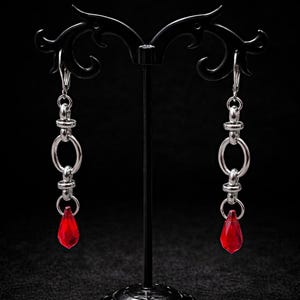 Here are our exquisite little coffin earrings, paired with a captivating green crystal.