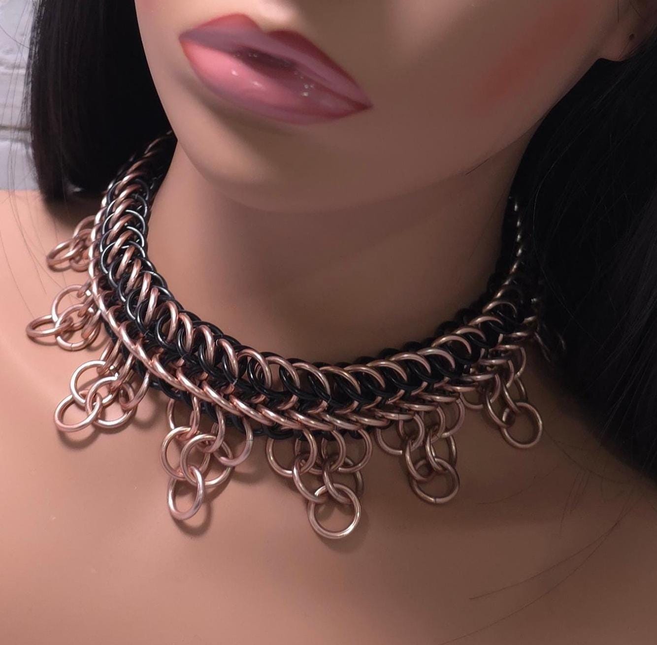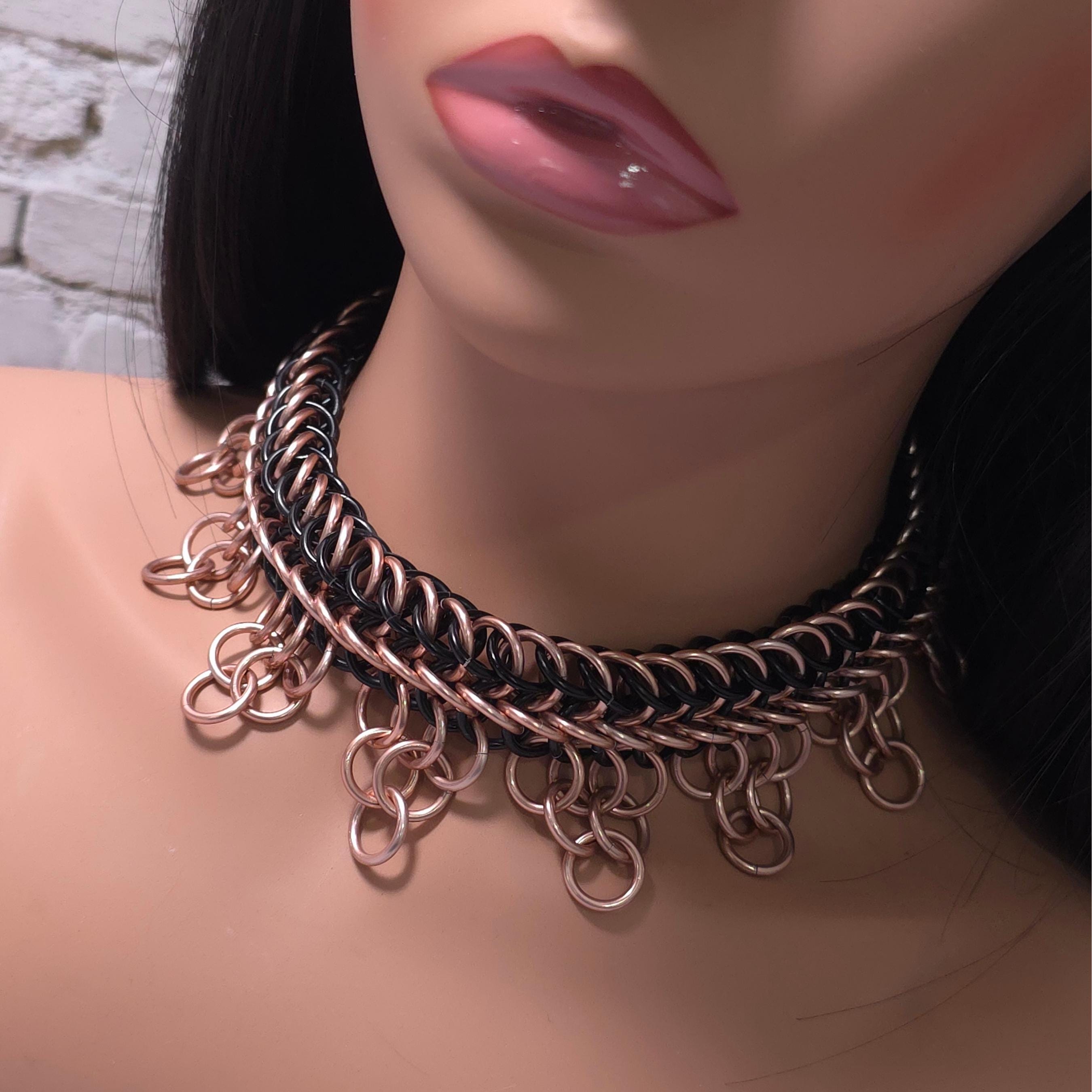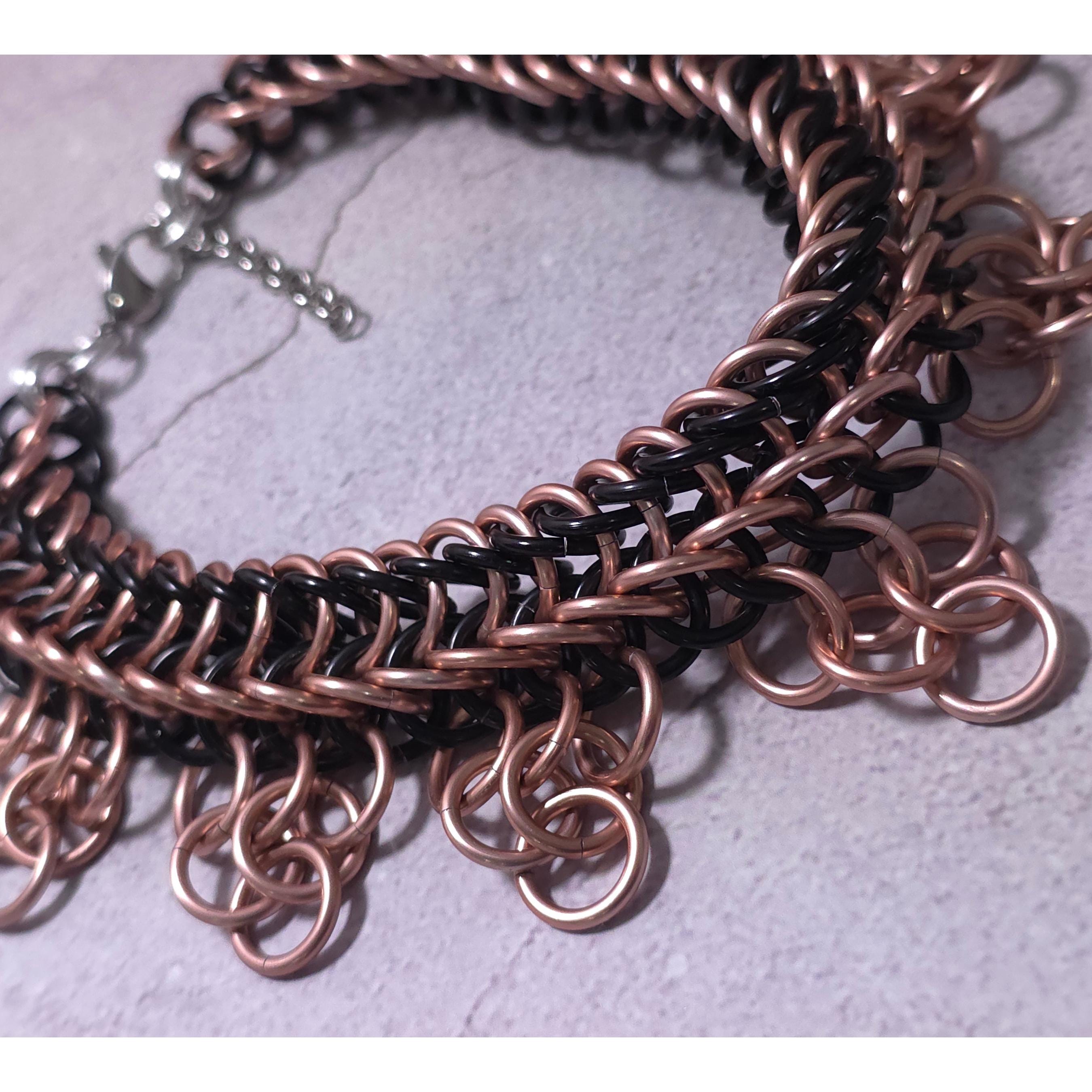 Black & Copper Gothic Choker Necklace – Aluminum Chainmail, Stainless Steel Clasp, Striking Industrial Choker, Statement Jewelry